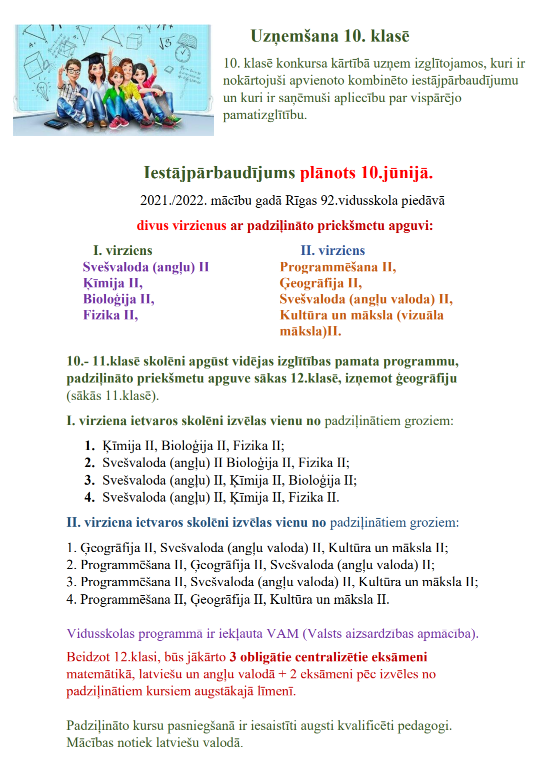 12. klasē (pēc noslodzes) Optiometrija, tehniskā grafika, astranomija, ekonomika, medicīnas fizika, vides zinības, filozofija, psiholoģija, politika un tiesības.